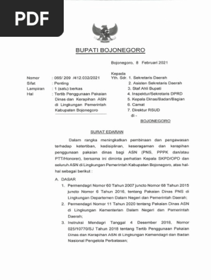 Edaran Bupati Bojonegoro Tentang Seragam Asn : Soal Penggunaan Pakaian Dinas Dan Atribut Pns Kemendagri Keluarkan Surat Edaran Website Resmi Biro Pemerintahan Dan Kesejahteraan Rakyat Provinsi Banten / Pentingnya seragam dinas asn pun menjadi perhatian bagi menteri panrb yuddy chrisnandi dalam menjalin komunikasi dengan masyarakat.